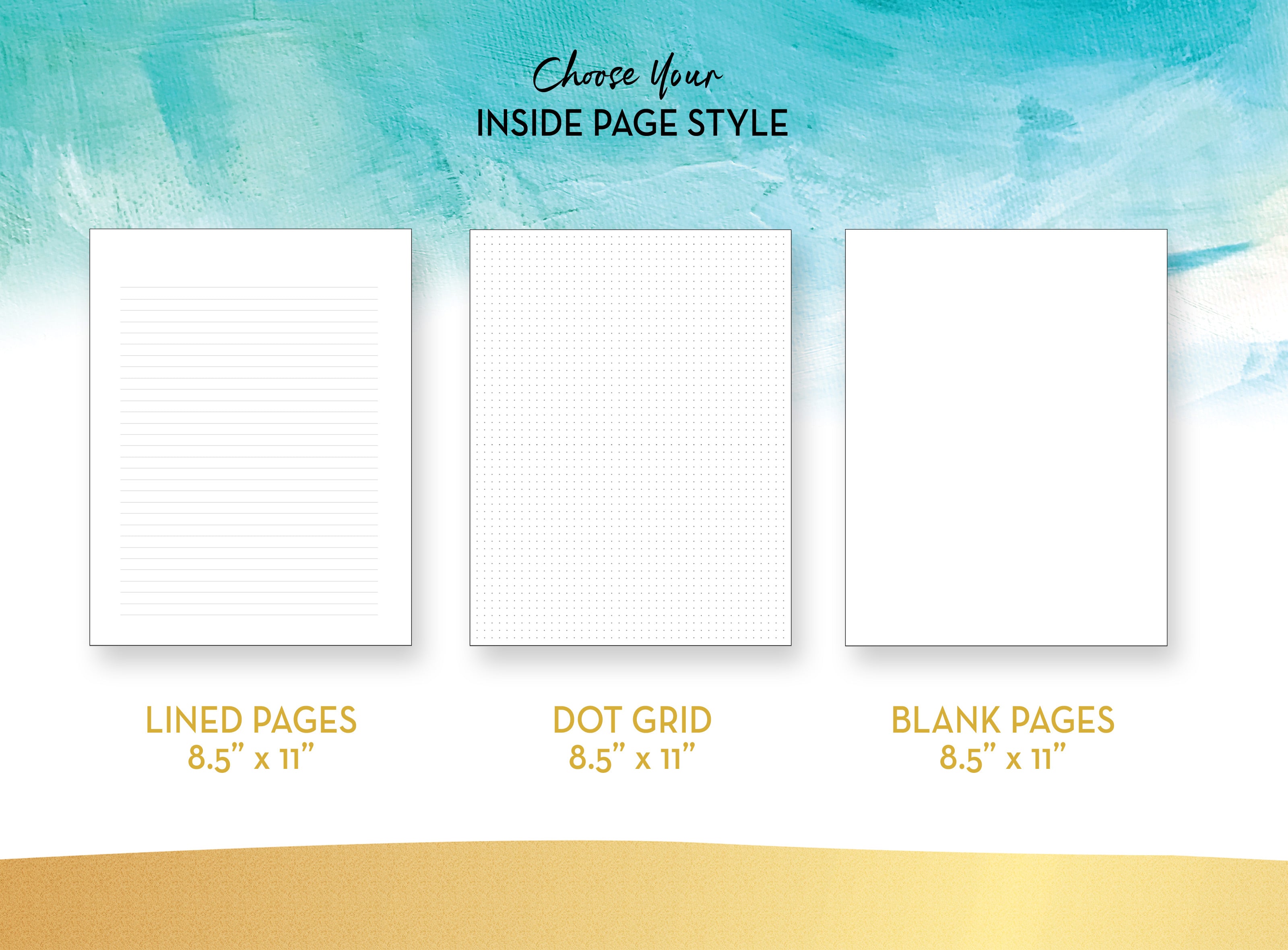 Get creative with this unique journal to write down thoughts, plans, or anything your heart desires. Available with lined pages for writing, dot-grid for bullet journaling, or blank pages for sketching.